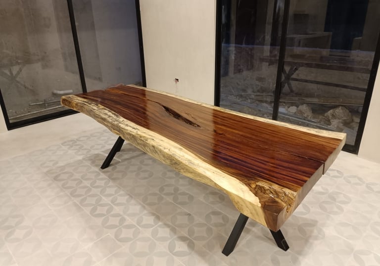 Muebles finos hechos con pasión y dedicación, fusionando texturas naturales y acabados impecables que cuentan historias de maestría artesanal.